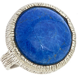 This Yochi blue ring is sheer excellence. A large blue lucite stone nests in a silver plated white metal ring and is the perfect way to add a touch of color to any ensemble. The texture gives it added dimension.