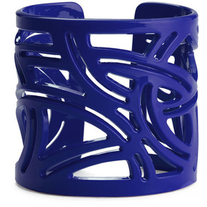 Sweeping cutouts offer a compelling design on a lightweight cuff cast in a bright hue. Would look great paired with a white blazer, slacks & blue tank with wedge heels.