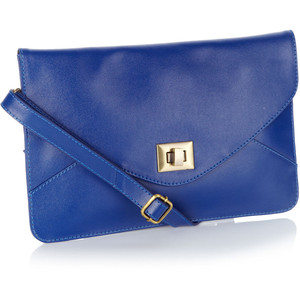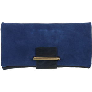 This real suede oversized blue clutch with fold over detail works for the office or date night.